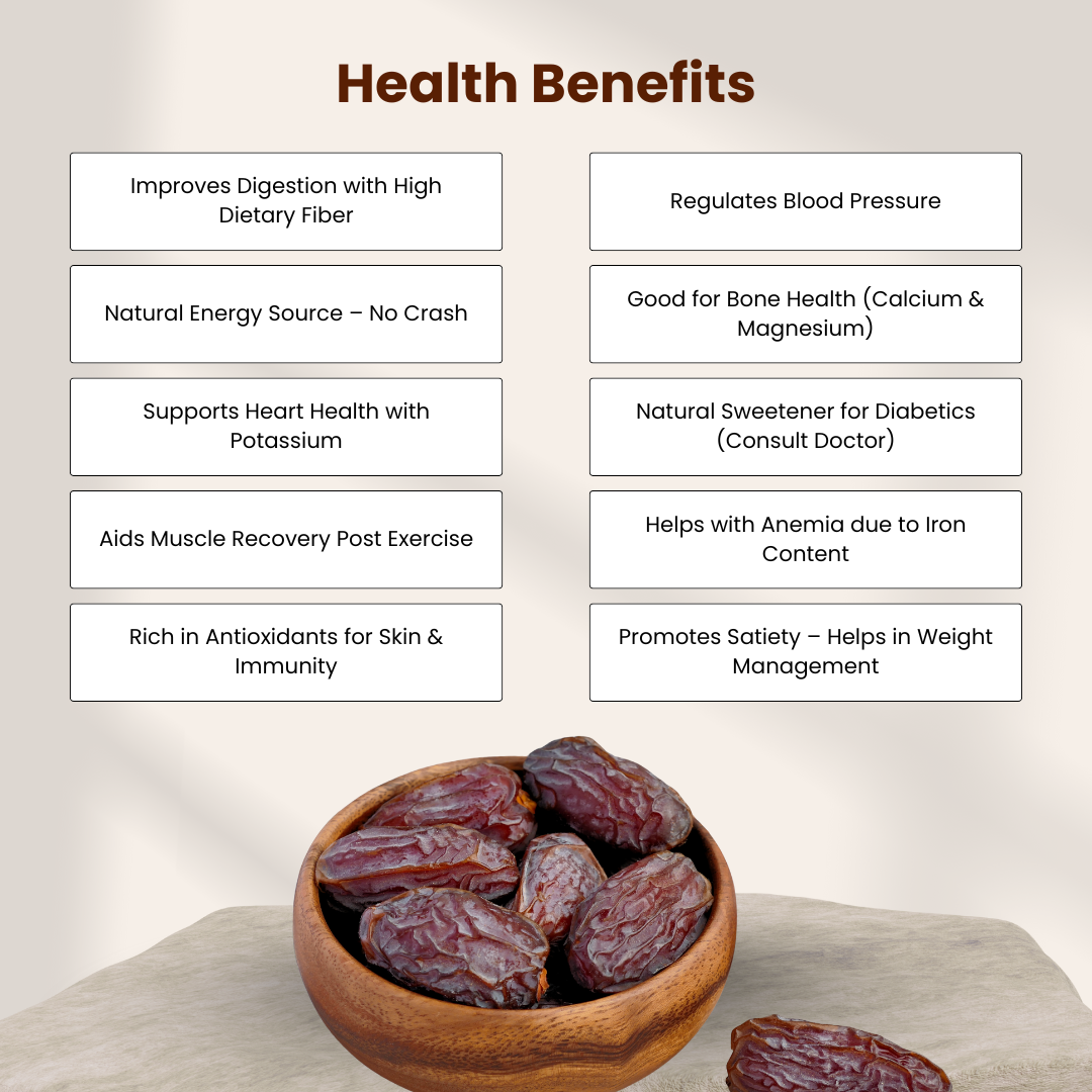 Indulge in jumbo dates with a natural, robust taste. Packed with nutrients to energize your daily routine.