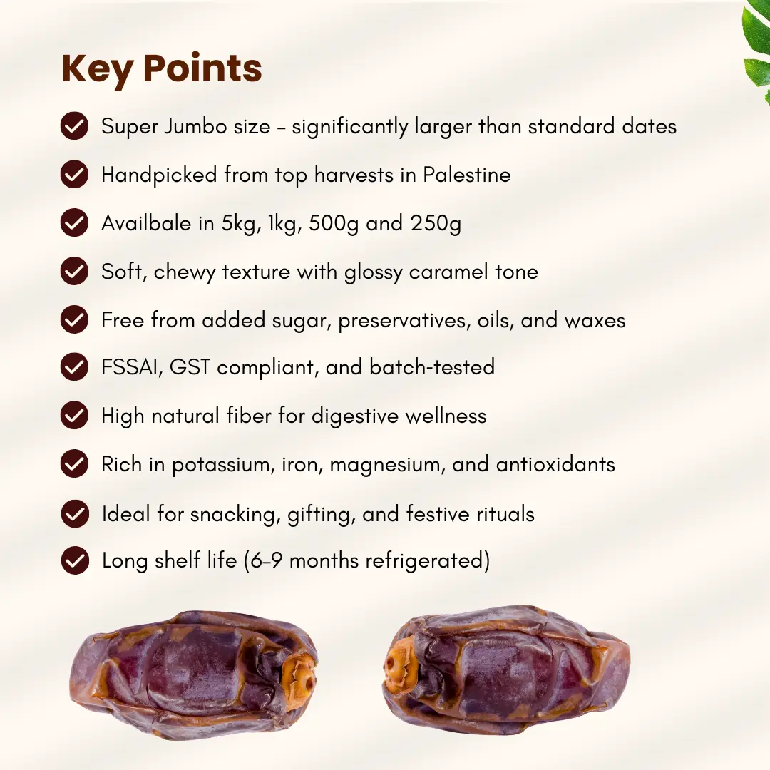 Palestine, these dates are handpicked to ensure top-notch quality and freshness in every bite.